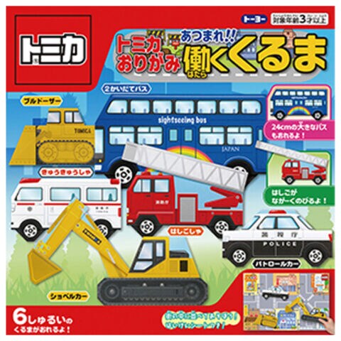 トミカ おりがみ あつまれ働くくるま 6種類 パトカー 救急車 バス 背景シート付 折り紙 かっこいい トーヨー