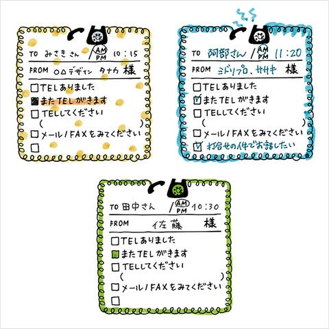 「電話柄」は、付せんに押すと伝言やメッセージに便利なデザインです。