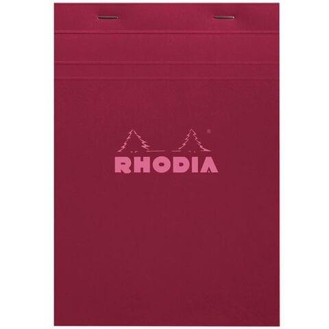 RHODIAロゴがエンボス加工された、縦開きのカバー。