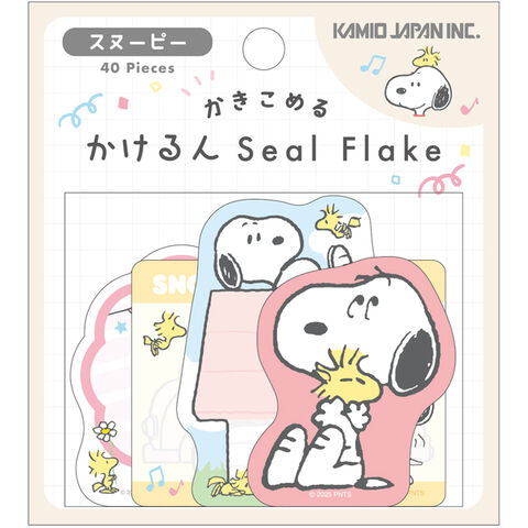 スヌーピー&ウッドストック かけるん フレークシール 4柄×各10枚 色紙 寄せ書き ラッピング かわいい カミオジャパン