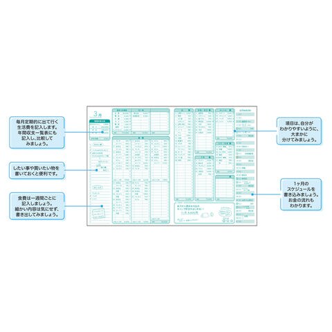 【内 容】年間計画、ウィッシュリスト、月間収支一覧表、グリッドメモ、年間収支一覧表、フリー項目別控え、アドレス、パスワードリマインダー