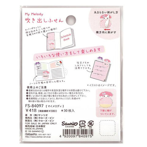 マイメロディ 吹き出しふせん 雲形 30枚 付箋 メモ メッセージ 手帳 ノート 目印 かわいい サンリオ クローズピン