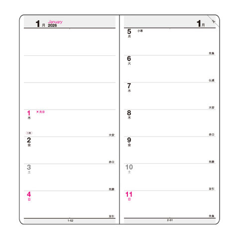 コレクト 2026年 手帳・ダイアリー ウィークプログラム 紙幣サイズ 見開き2週間