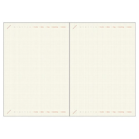 月間は余白がたっぷりで自由に使えます。ベースの2.5mm方眼は線をひいたり文頭を揃えるガイドにできます。フリーメモは必要な時に書きたい分だけ書けるフォーマット。ダイアリーと一緒に管理したい情報や記録を簡単にメモしておける、ちょうどいいページ数です。