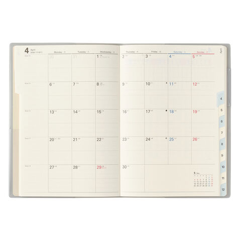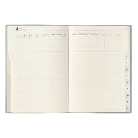 月と月のあいだに罫ページと方眼ページもあるのでその月ごとの記録はもちろん、ちょっとしたメモなど様々な用途に便利に使えます。便利なインデックス付き。