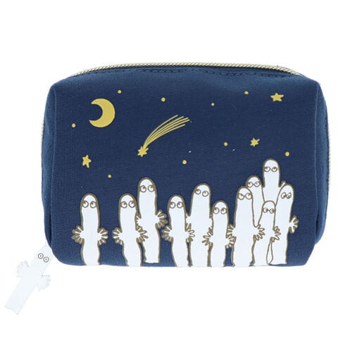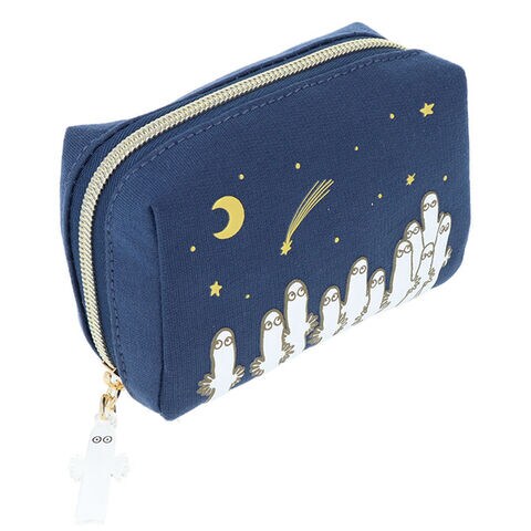 ムーミン ニョロニョロ パフプリントミニポーチ ネイビーブルー ボックス型 チャーム付 メイク 小物 かわいい