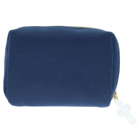 【送料無料】ムーミン ニョロニョロ パフプリントミニポーチ ネイビーブルー ボックス型 チャーム付 メイク 小物 かわいい - メール便発送