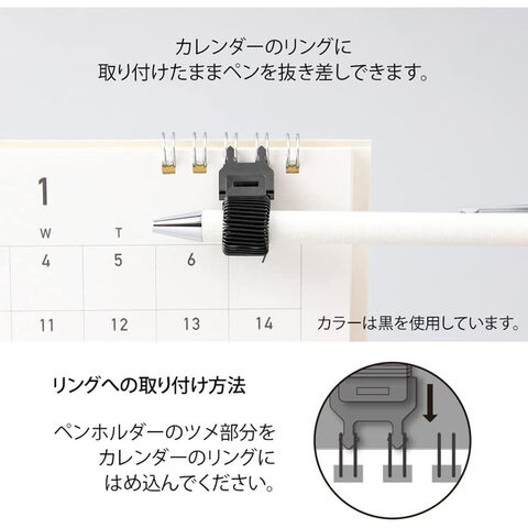 カレンダーのリング部分に簡単に着脱できるペンホルダーです!