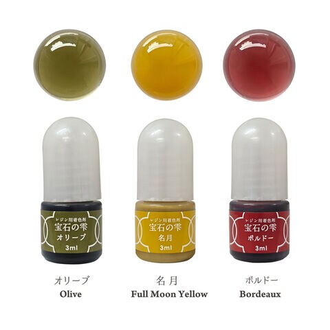 ・1滴ずつ出るボトルタイプで、手が汚れない ☆使い方 ①レジン液を少量出し、その中に着色剤を加える ②レジン液と着色剤と混ぜ合わせる ③その中にレジン液を足して、目的の量にする ※最初に少量で着色剤を溶かすのは色むらをなくすためです