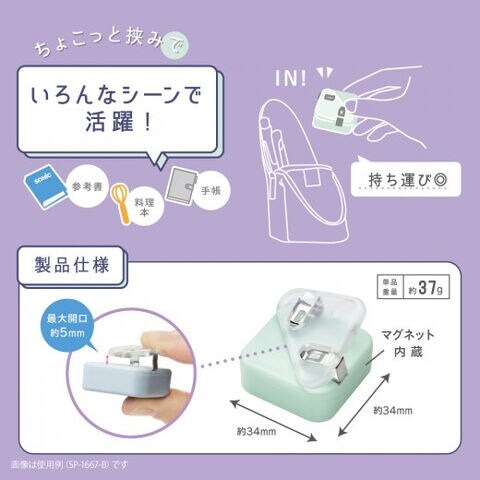 2個使いでよりしっかりページキープ!本のカド上下を留めるorマグネット内蔵でくっつくから、重ねておもさUP♪