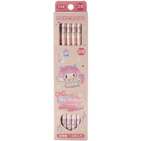【送料無料】マイメロディ かきかた鉛筆 2B 12本セット 六角軸 お名前スペース付 学童 小学校 かわいい 日本製 サンリオ - メール便発送