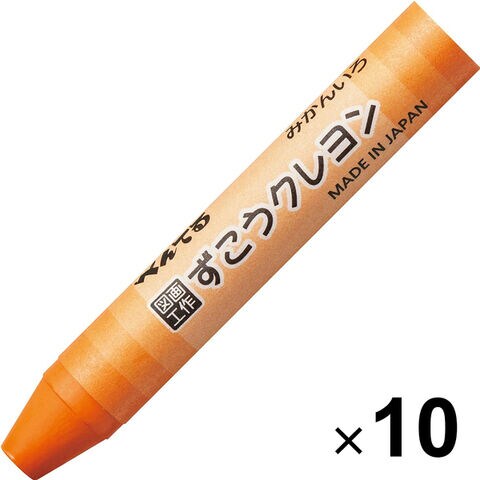 【1000円以上お買い上げで送料無料♪】【10本セット】 ずこうクレヨン 単色 みかんいろ 極太軸 握りやすい 折れにくい 小学校 図画工作 日本製 ぺんてる - メール便発送