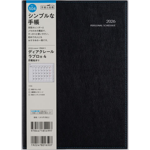 高橋書店 2026年 手帳・ダイアリー (504) ディアクレールラプロ4月曜始ま A5 ブラック 見開き1か月
