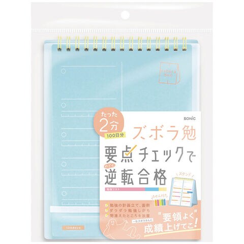 【送料無料】ズボラ勉強 要点チェックリスト 100日分 2連メモ スタンドタイプ A5 ライトブルー ふせん付 ToDo 学習計画 受験 - メール便発送