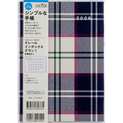 【送料無料】高橋書店 2026年 手帳・ダイアリー (376) クレールインデックスグラン1 A5 チェック 見開き1か月 - メール便発送