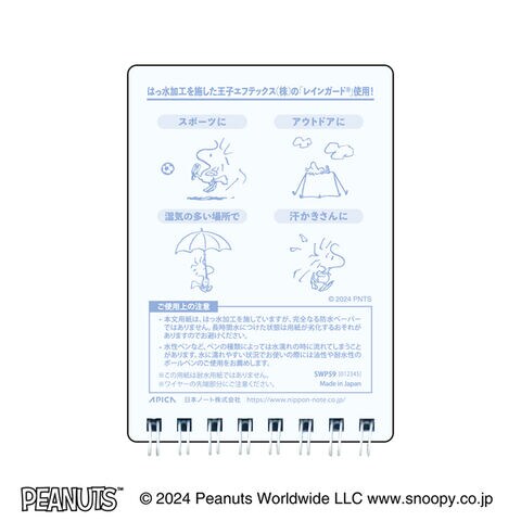 スヌーピー レインガードメモ A7 ホワイト 40枚 横罫 Wリング 撥水加工 キッチン アウトドア スポーツ 防災 日本ノート