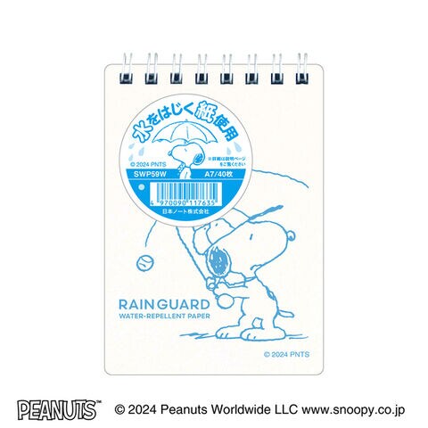 【1000円以上お買い上げで送料無料♪】スヌーピー レインガードメモ A7 ホワイト 40枚 横罫 Wリング 撥水加工 キッチン アウトドア スポーツ 防災 日本ノート - メール便発送