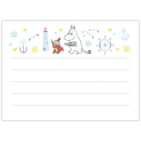 ムーミン ミニレターセット Let's have a Happy Journey 海への憧れ ブルー 便箋 封筒 手紙 かわいい