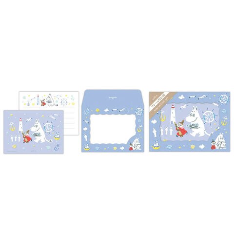 【1000円以上お買い上げで送料無料♪】ムーミン ミニレターセット Let's have a Happy Journey 海への憧れ ブルー 便箋 封筒 手紙 かわいい - メール便発送