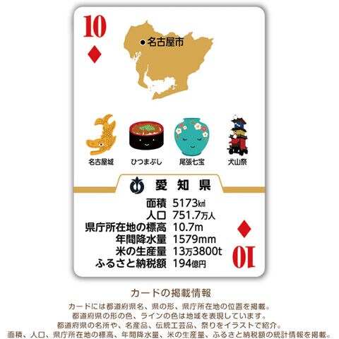 トランプには、都道府県の人口や面積などの統計情報も掲載。