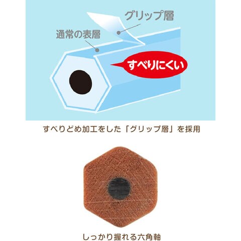 鉛筆軸の表面に、すべりどめ加工をした「グリップ層」を採用。