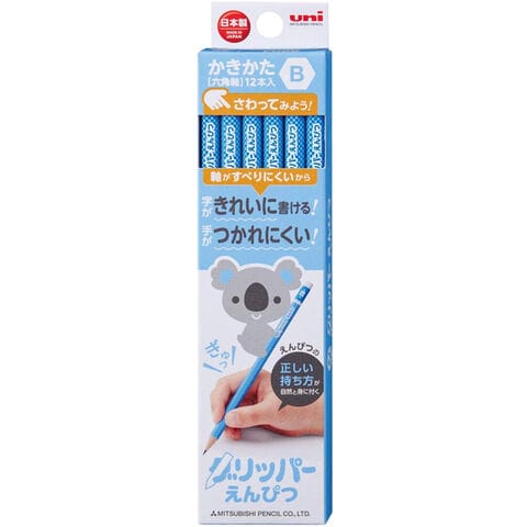 かきかた鉛筆 グリッパーえんぴつ B 青 1ダース 12本入 六角軸 すべりどめ加工 入学 小学生 子供 日本製 三菱鉛筆