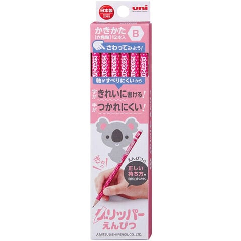 かきかた鉛筆 グリッパーえんぴつ B ピンク 1ダース 12本入 六角軸 すべりどめ加工 入学 小学生 子供 日本製 三菱鉛筆