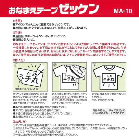 ニチバン おなまえテープ ゼッケン アイロン接着タイプ 2枚入 MA-10 ... お名前シール