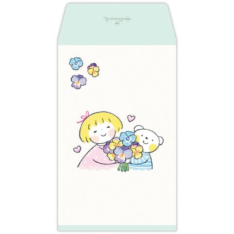 【1000円以上お買い上げで送料無料♪】仲良しともだち メモ付きポチ袋 お花 各3枚入 三つ折り 多目的 お年玉 はるちゃんとふうくん LINEスタンプ かわいい - メール便発送