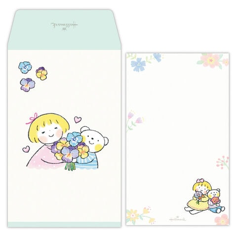仲良しともだち メモ付きポチ袋 お花 各3枚入 三つ折り 多目的 お年玉 はるちゃんとふうくん LINEスタンプ かわいい