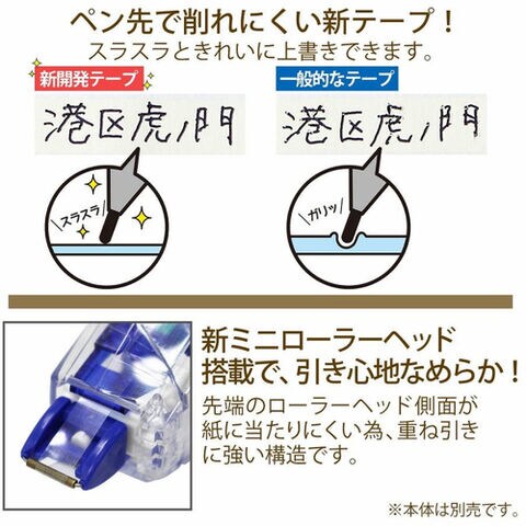 「ホワイパースライド」の交換テープは、ポップカラー、ベーシックカラーの本体及び、「裏から見えない修正テープ」にもご使用いただけます。