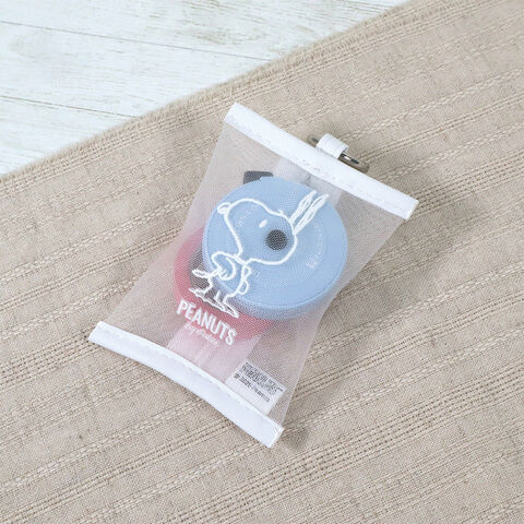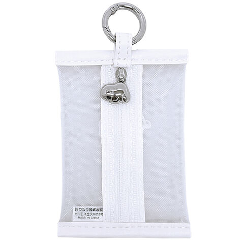 SNOOPY スヌーピー ホワイトシリーズ カラビナ付きポーチ B柄 メッシュ生地 チャーム付 小物入れ 白×透明 かわいい
