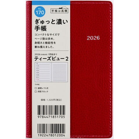 高橋書店 2026年 手帳・ダイアリー (170) T’beau2 手帳判 レッド 1週間+メモ