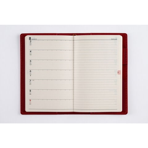 カバーは、高級感がある皮革調。カバーのステッチ糸も、カバー色に合わせて選び抜いています。本文は、目にやさしいクリーム色の用紙を使用しています。細部にまでこだわり抜いた手帳は、毎日使うのがきっと楽しくなるはずです。