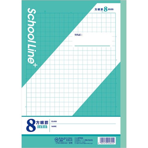 【送料無料】【5冊セット】 学習帳 スクールラインプラス セミB5 8mm方眼罫 グリーン LSP8G 小学4年/5年/6年生 授業 勉強 - メール便発送