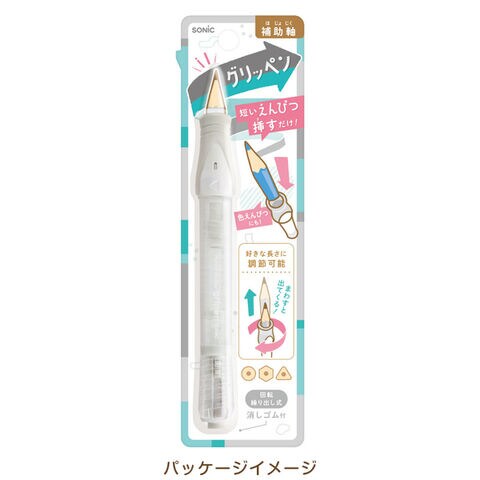 【1000円以上お買い上げで送料無料♪】補助軸 グリッペン ライトブルー 回転繰り出し式 太軸グリップ 消しゴム付 鉛筆ホルダー 丸軸/六角軸/三角軸対応 入学 ソニック - メール便発送