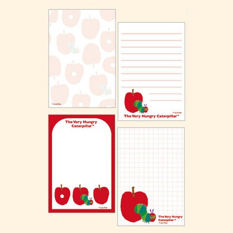 【1000円以上お買い上げで送料無料♪】はらぺこあおむし パタパタメモ りんごシリーズ レッド 4柄入 人気 エリック・カール 絵本 かわいい マリモクラフト - メール便発送