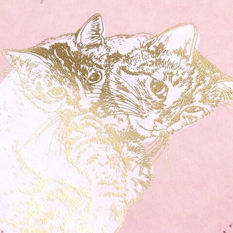 かわいい猫のイラストが箔で煌めく「ブックカバー」です。