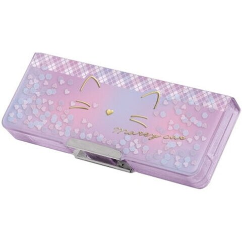 両面開きペンケース エアリークリア キラキラホロパーツ入り メイティキャット 猫 ねこ ネコ かわいい クラックス