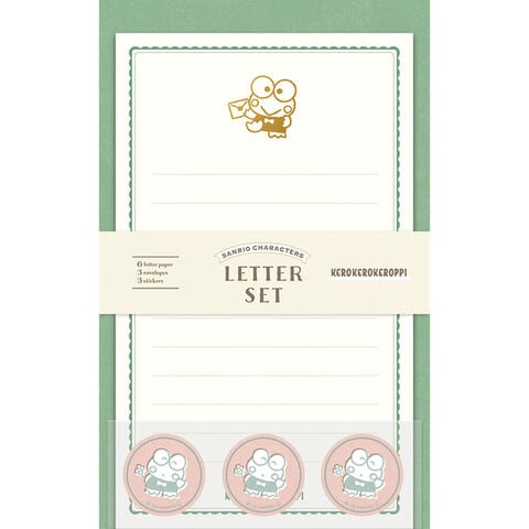 【1000円以上お買い上げで送料無料♪】けろけろけろっぴ 箔押し ミニレターセット 便箋 封筒 シール 手紙 手書き風イラスト 大人かわいい サンリオ 古川紙工 - メール便発送