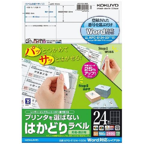 コクヨ プリンタを選ばない はかどりラベル A4 24面 100枚