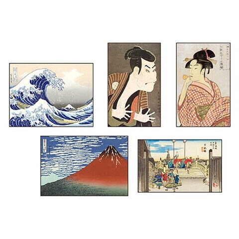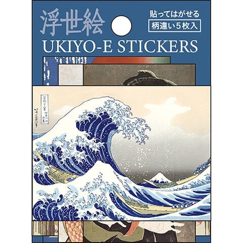 【1000円以上お買い上げで送料無料♪】ステッカーセット 浮世絵 5柄入 冨獄三十六景 葛飾北斎 写楽 喜多川歌麿 貼ってはがせる スマホ デコ パインブック - メール便発送
