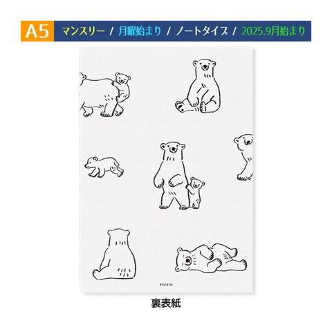 【送料無料】リュリュ 2026年 ダイアリー 手帳 A5サイズ アニマルパレード シロクマ マンスリー 月曜始まり - メール便発送
