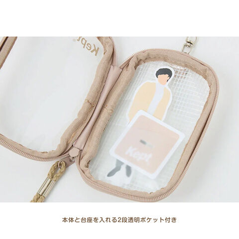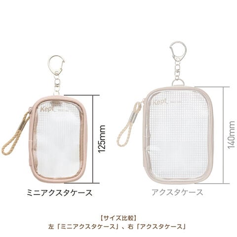 Kept ケプト ミニアクスタケース ムーングレー 透明 メッシュ繊維入 キーホルダー付 ポーチ デコ 推し活 レイメイ藤井