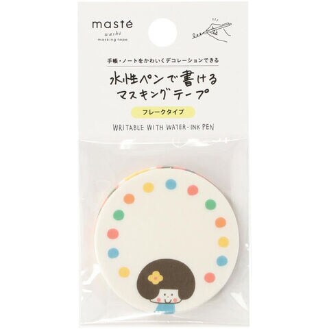 【1000円以上お買い上げで送料無料♪】水性ペンで書けるマスキングテープ フレーク mizutama まる 丸 カラフル 5柄×各4枚 和紙 付箋 メモ かわいい マークス - メール便発送