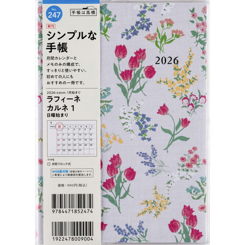 【送料無料】高橋書店 2026年 手帳・ダイアリー (247) ラフィーネカルネ1 B6 花柄 見開き1か月 - メール便発送