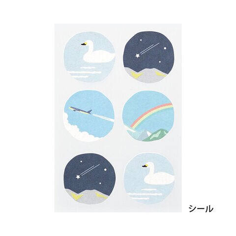 封筒 しあわせ 風景柄 2色×各3枚 シール付 白鳥 流れ星 飛行機雲 虹 手紙 幸運 かわいい 日本製 ミドリ