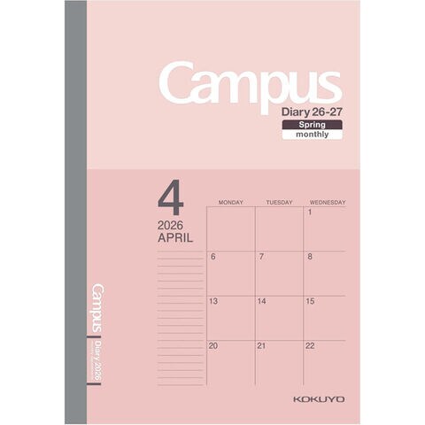 【1000円以上お買い上げで送料無料♪】コクヨ キャンパスダイアリー 2026年 4月始まり 手帳 マンスリー スタンダード B6 ピンク 月間ブロック 月曜 学生 ビジネス - メール便発送