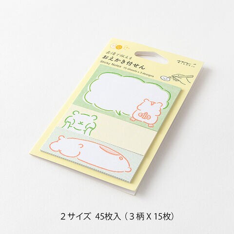 おえかき付せん ハムスター柄 3柄×各15枚 付箋 顔 表情 メモ メッセージ コミュニケーション かわいい ミドリ