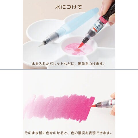 みずみずしく鮮やかな発色で、毛筆タイプならではの自由な表現ができるカラー筆。